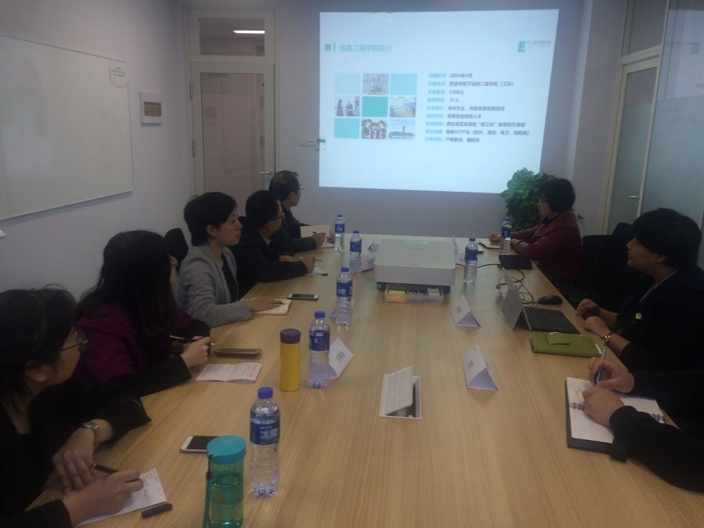 我院考察组成员认真听取了欧亚学院信息工程学院刘丽丽副院长的报告,刘副院长从办学特色、人才培养模式、产教融合、教学管理等方面详细介绍了信息工程学院的概况和办学成就及经验和做法。在此基础上,双方还就一些人才培养质量提升等具体问题进行了深入交流。